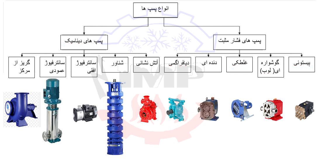پمپهای جابجایی مثبت به دو دسته اصلی رفت و برگشتی و دورانی تقسیم میشوند که هر یک شامل زیرمجموعههایی با مکانیزمهای خاص هستند